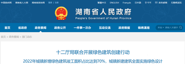 湖南12廳局發文 | 2022年綠色建筑竣工達70%